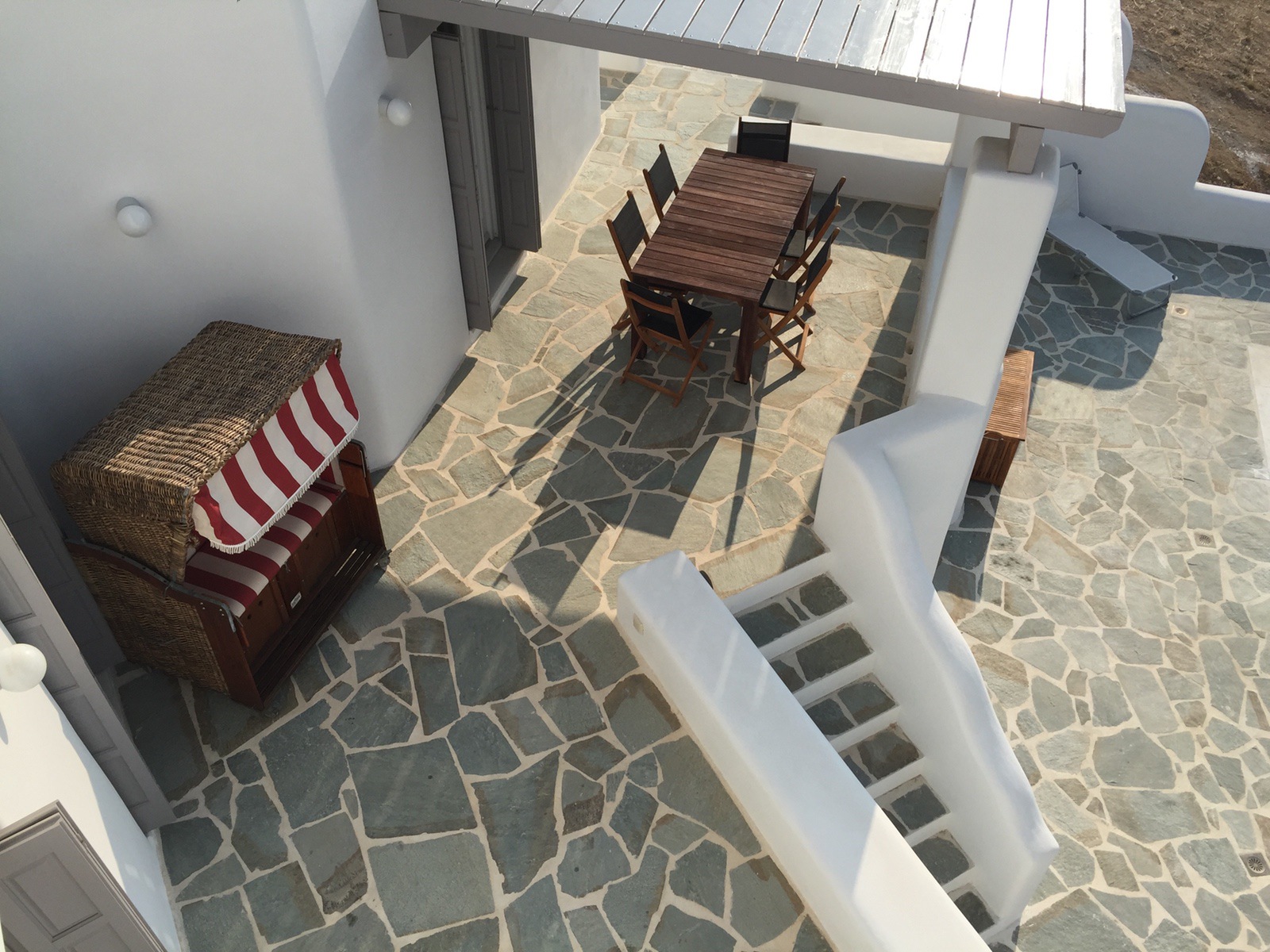 Die Villa Meltemi wurde mit hohen Standards gebaut und bietet auf zwei Ebenen Wohnkomfort für bis zu zwei Familien mit 8 Personen.